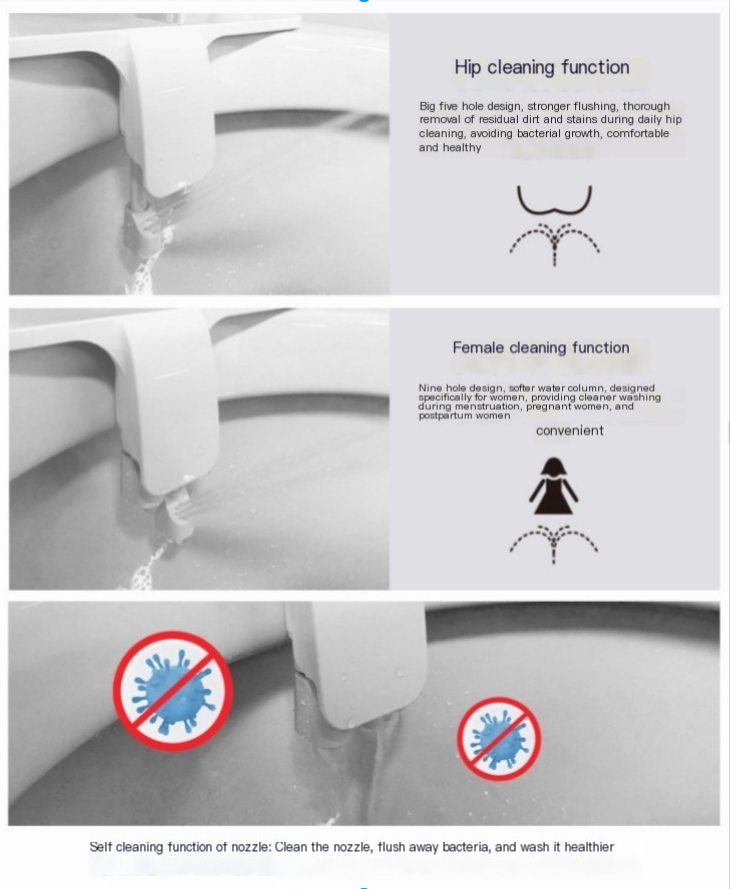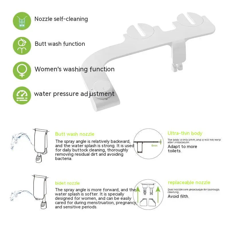 ✔ Dual Nozzle Design – Ensures thorough and hygienic cleaning